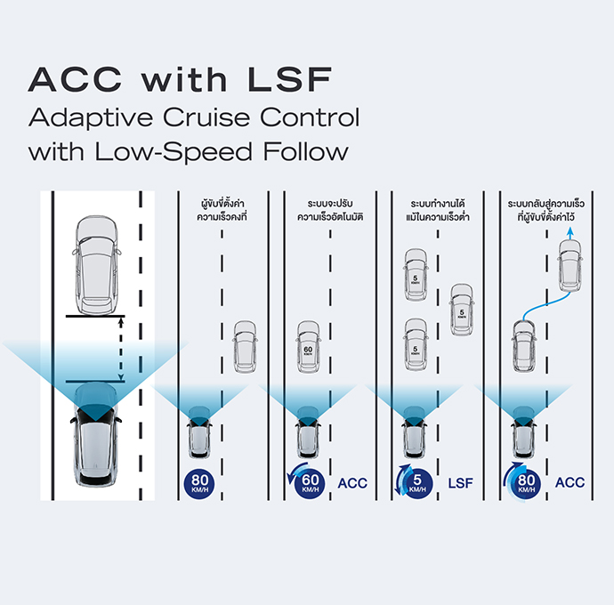 ACC with LSF ช่วยควบคุมความเร็วอัตโนมัติพร้อมปรับความเร็วตามรถคันหน้าที่ความเร็วต่ำ